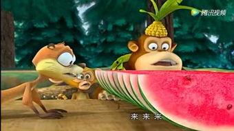 还有这只小猴子,它一边吃瓜,一边在树上荡秋千。结果,西瓜太重,它荡得太高,一不小心,西瓜就掉到了地上。看着那滚来滚去的西瓜,真是让人忍俊不禁。
